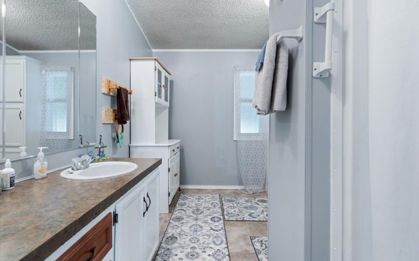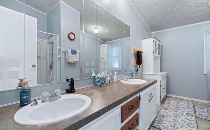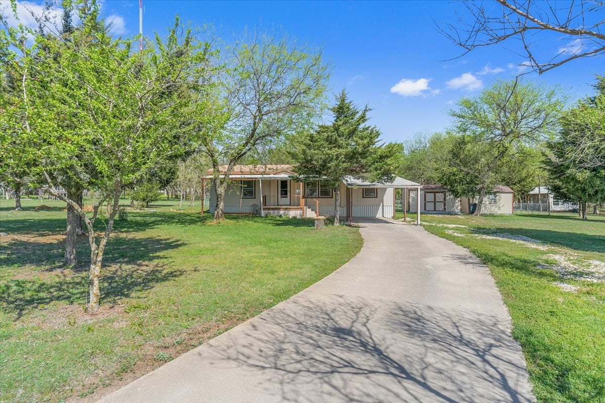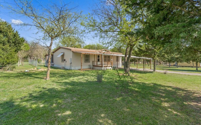 SOLD This immaculate property has 1.5 acres located just off I-35 and FM 934. This doublewide has 1232 sq. feet, 3 bedrooms, 2 baths, and central heat and air. The homeowner has taken very good care of the property. Roof was replaced in 2016. Property has a chain linked fenced in backyard and 2 nice storage buildings. 1 car metal carport. Concrete driveway and gravel drive for additional parking. Master bathroom as double vanity sinks and walk in shower. There is a shower/tub combo in the other full bathroom. The additional sunroom is a bonus. Lots of variety of trees.
