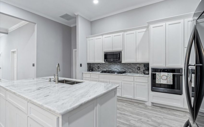 SOLD This 2327 sq. foot home that was built in 1945, has been completely remodeled. It has the charm of that era but has all the modern conveniences of 2022. As you walk up to the front porch and open the front door, first thing you notice is the open floor plan and the 12 foot ceilings. Color scheme is whites and grays for that updated feel. Laminate flooring throughout, no carpet. As you walk past the living room, you walk into the kitchen and dining area. Kitchen has a gas stovetop and new cabinetry, island with sink and dishwasher, but electric built in oven. All the bedrooms are large, especially the master. There is currently a king sized bed and dresser with room to spare. Walk in master closet. En suite bathroom has a tub, walk in shower, and double vanity sink. The other full bathroom is a shower only. The new concrete 2 car driveway is perfect for off street parking. There is also a concrete slabe along the rear of the home for entertaining and privacy to the backyard. The vacant lot on the west side is included with this property to give you almost 1/2 an acre of land. The city has merged the two lots into one address.