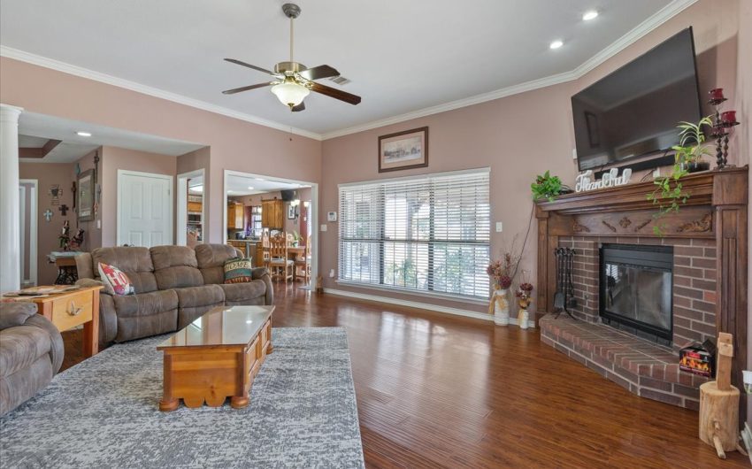 SOLD Abbott ISD, just west of I35…this property has it all. 37.773 acres of pasture for livestock, 3 stock tanks with fish, all fenced and cross fenced. Perfect for a property without out too much land but just enough. Pastures are ag exempted. This 1999 brick home has approx. 2235 sq. feet. It’s master bedroom has french doors to lead out to the covered patio. The huge walk in closet is just inside the en suite, where there are double vanity sinks, separate tub and newly tiled shower. The other two bedrooms are nice sized and there’s a hall bathroom with shower-bath combo. The living room has an open concept, woodburning fireplace, and vaulted ceilings. The kitchen has granite countertops and stainless steel appliances. Bay windows in the breakfast nook look out to the stock tank and patio with pergola. Brand new roof and AC. There is a separate dining room, big utility room, and even a bonus room that could be used for 4th bedroom or office.