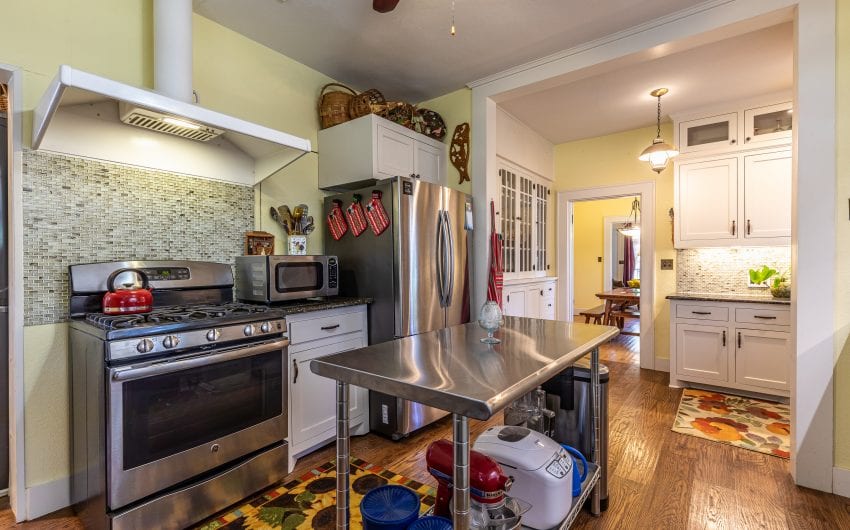 SOLD The best of both worlds! Charming turn of the century craftsman style home with all of the modern updates you are looking for. This well cared for home boasts three large bedrooms and a spa like bathroom with a garden tub and separate shower. You must see this gorgeous kitchen with granite counters, lighted glass front cabinets overhead, and a separate butler’s kitchen with prep sink. The living room has a wood burning fireplace with beautiful built-ins. Wood floors throughout the home. All of this is situated on a large corner double lot with mature trees. Call for your personal tour today!