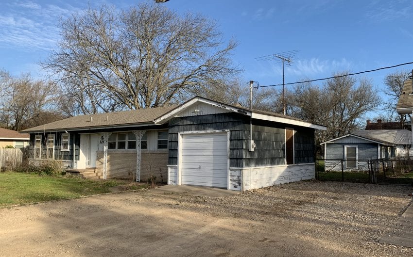 SOLD Cute 2 bedroom, 1 bath home with approx. 1098 sq. feet on .27 of an acre. Home is on pier and beam with concrete border and possible hardwood floors under the carpet. 1960’s retro kitchen with wood paneling and gas burning stove and fridge. Newer water heater, central heat and air, and roof is only a year old. Huge living room window overlooks the fenced in backyard. There’s a small outbuilding. 1 car attached garage. Convenient location- a couple of blocks from I-35.