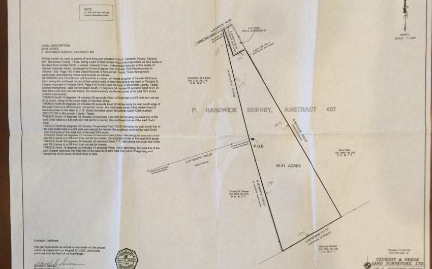 SOLD This 25.81 acre tract of land has a gated entrance with approx. 1200 feet of “runway” leading to approx. 18 acres of open, ag-exempted coastal hay field. Part of this property has been used as a runway in prior years. Coastal has been well taken care of with fertilizer and weed kill used regularly. About 7 acres of the property is heavily treed with wildlife and whitetail deer. Fencing on 3 sides. Property is located off Hamilton Drive in the city limits of Gholson. Easy drive to Waco, West, and Whitney. There is an existing water meter in place and owner does have a current survey of the property. Minerals are negotiable. Beautiful oak trees and sandy land. Call for a showing.