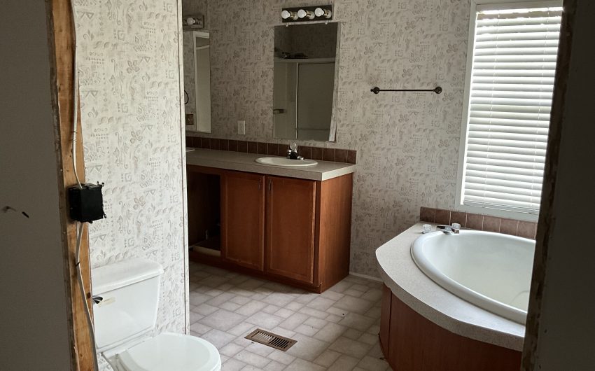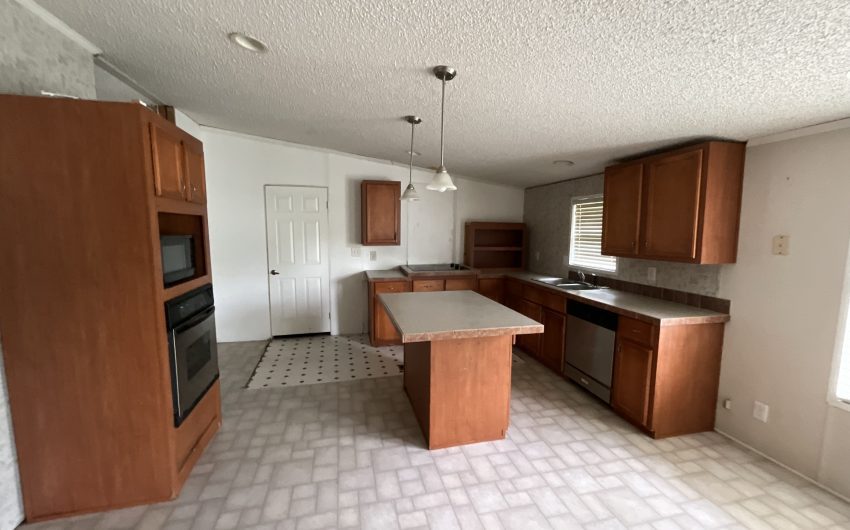 SOLD. New in Bynum. 2003 doublewide with 1794 sq. feet on a corner lot is available. This property is walking distance to the school, on a corner lot, and there is a vacant lot in front of the home. Several beautiful trees and a storage building in the back along with off street parking. Home has 3 bedrooms and 2 full baths with a large living area with a wood burning fireplace. The open kitchen has an island, built in oven and microwave, dishwasher, and electric stovetop. The dining room has windows facing the backyard to the south. Home needs a little TLC, so only cash or conventional buyers.
